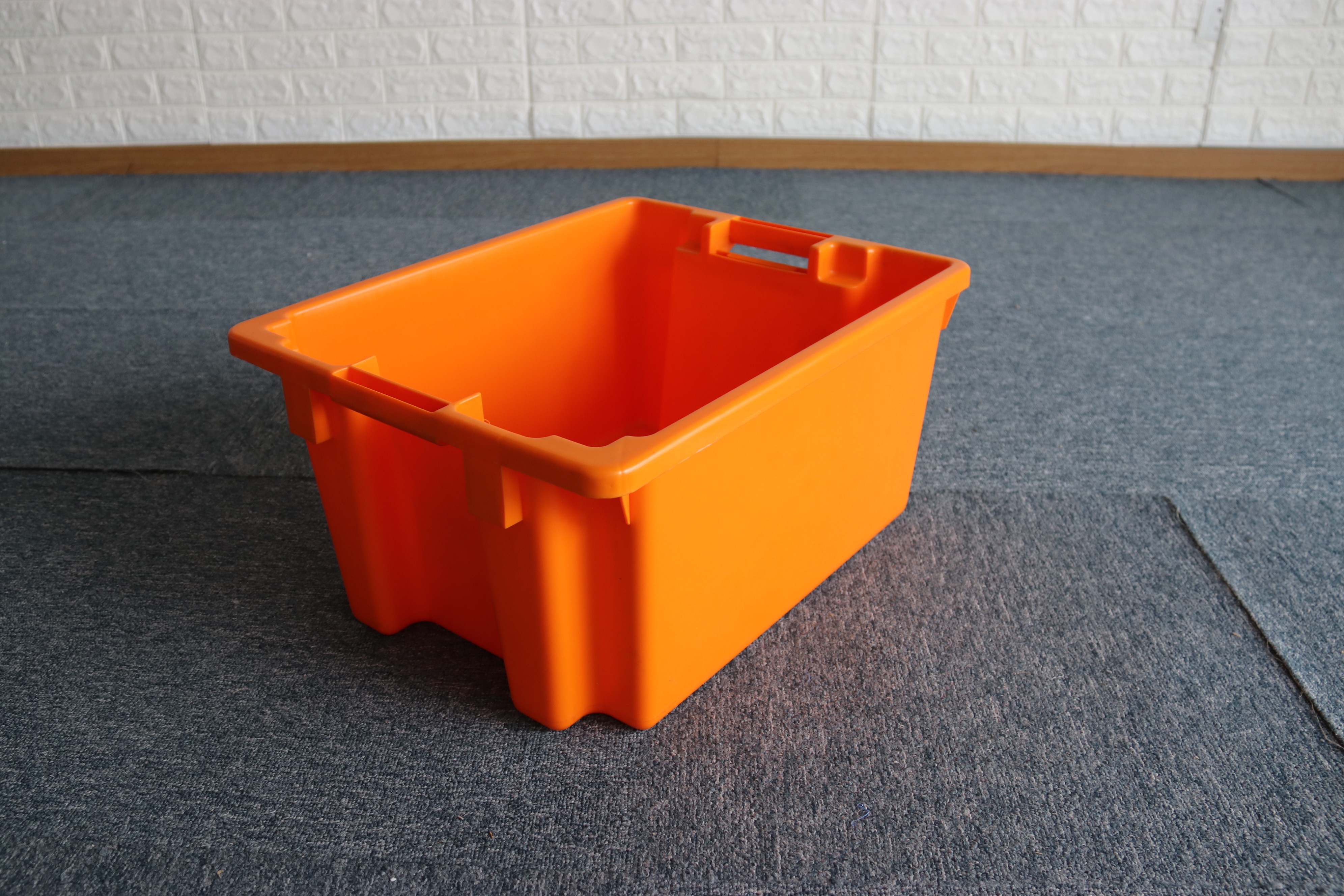Plastic storage tub is perfect for assembly line use,storing material or fabricated parts. The nesting crates stack when full, rotate 180° and nest when empty. Molded-in handle areas provide safe ergonomic handles. Easily cleaned in hot water or steam with standard detergents.